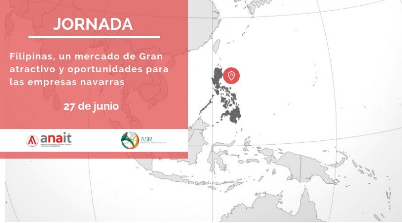 El próximo jueves 27 de junio tendrá lugar la jornada ‘Filipinas, un mercado de gran atractivo y oportunidades para las empresas navarras’, organizada por la Asociación Navarra de Empresas de Ingeniería, Oficina Técnicas y Servicios Tecnológicos (ANAIT) y ASR International Commerce Consultants, con la colaboración de la Asociación de Amigos Navarra & Filipinas (ANAFI) y de CITI Navarra.